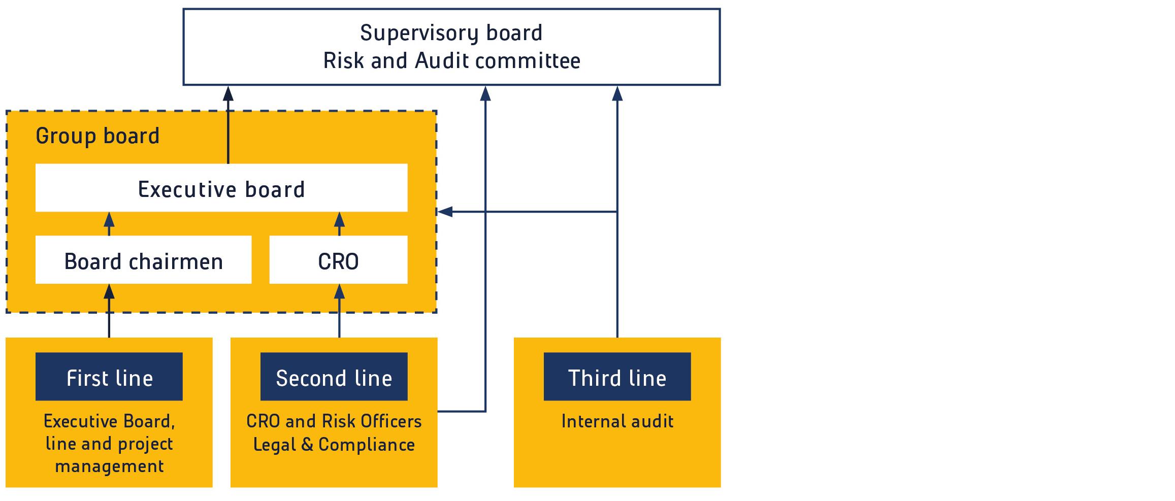 The third line (Internal Audit) monitors the correct compliance with and effectiveness of the control measures through an audit programme and reports periodically to the Executive Board, group board and the risk and audit committee.