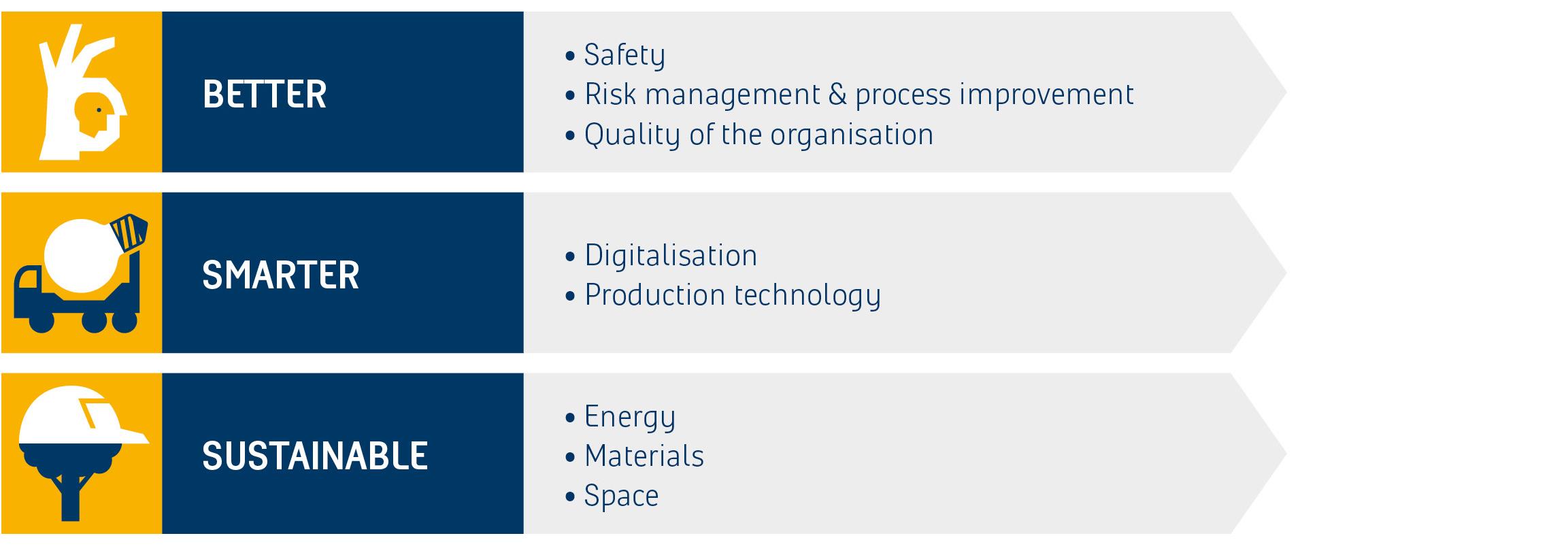 We have access to expertise in every aspect of construction and development in all our various business areas. While the business areas used to operate autonomously, these days they are increasingly working together in an integrated approach. This is enabling us as a company to develop new propositions that are even better suited to the complex issues facing our country. We deploy our joint expertise combined with that of our partners in an optimal fashion, based on a strategic agenda aimed at making things Better, Smarter and more Sustainable: