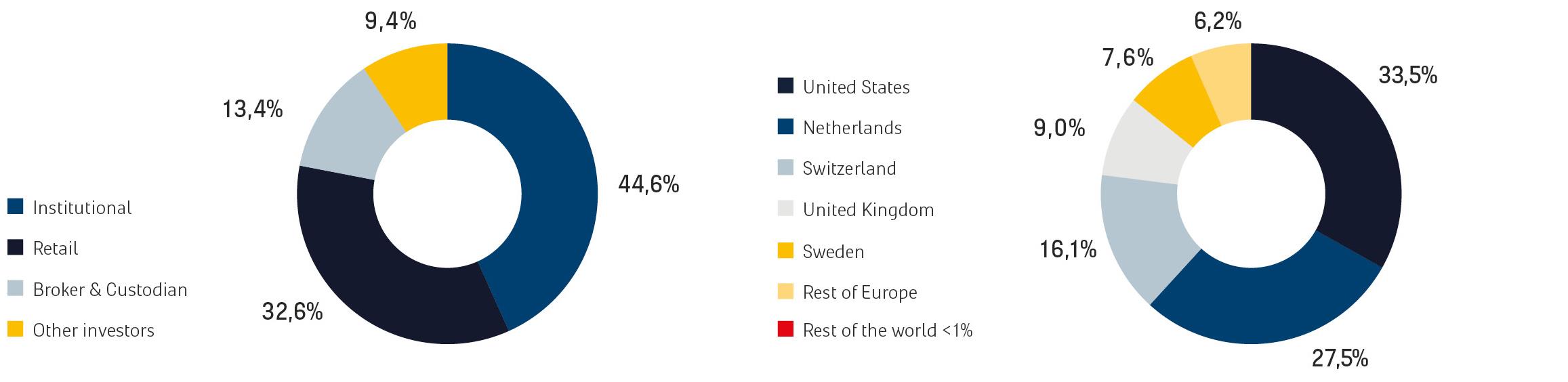 In the year under review, the (estimated) shareholdings held by institutional investors probably increased slightly to 44.6% (2021: 44.1%). An estimated 33.5% of the number of depositary receipts for ordinary shares held by institutional investors is held in the Netherlands (year-end 2021: 24.3%). The increase among Dutch shareholders was accompanied by a particularly visible decline among UK institutional investors. We estimate that the majority of the depositary receipts for ordinary shares held by retail investors are held in the Netherlands.